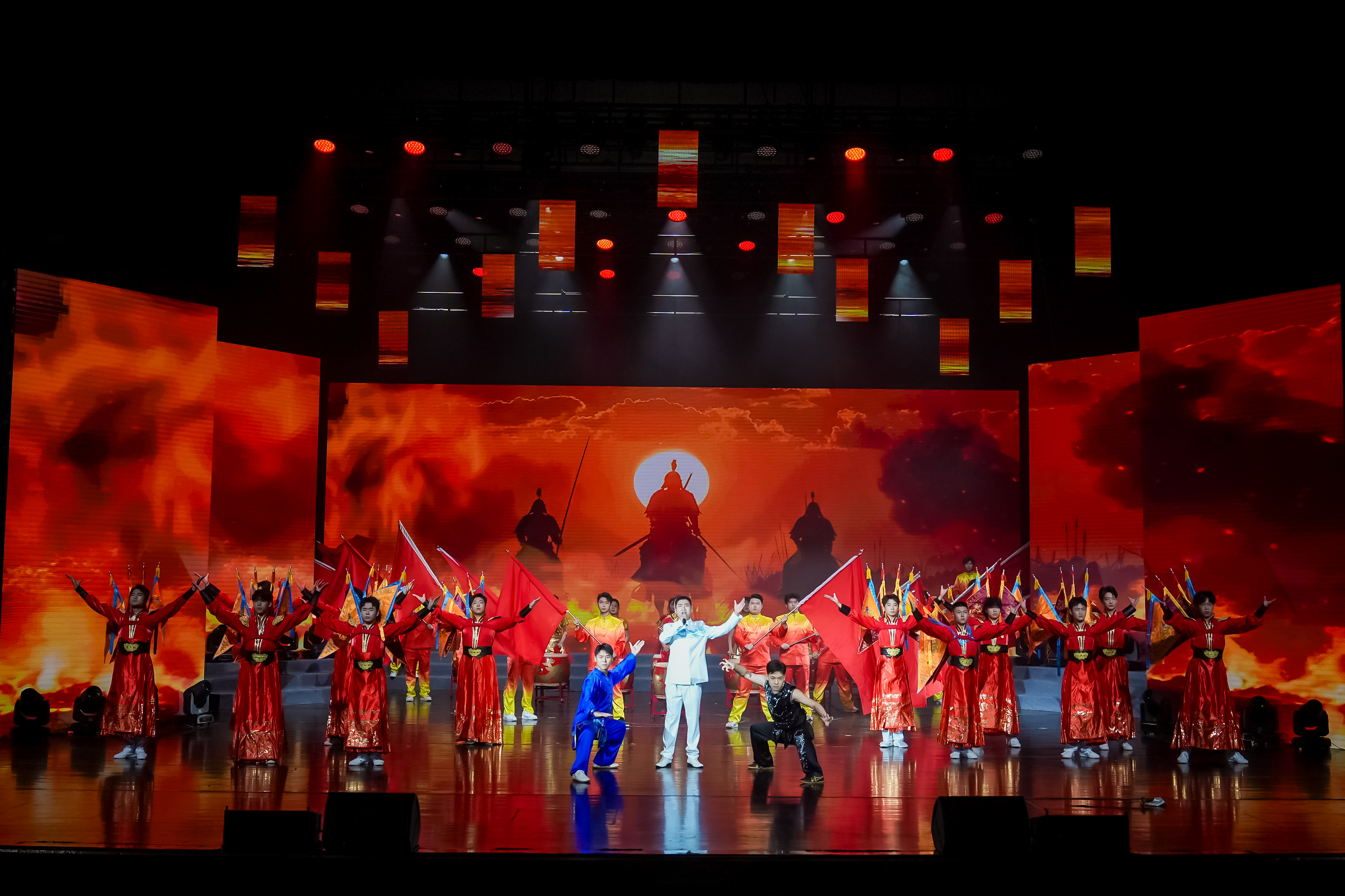 歌舞《精忠报国》激情献唱,刚劲武术震撼登场,热血沸腾的表演,唤醒穿越千年的家国情怀与忠诚担当,展现了燕赵儿女“精忠报国”的铮铮铁骨。
