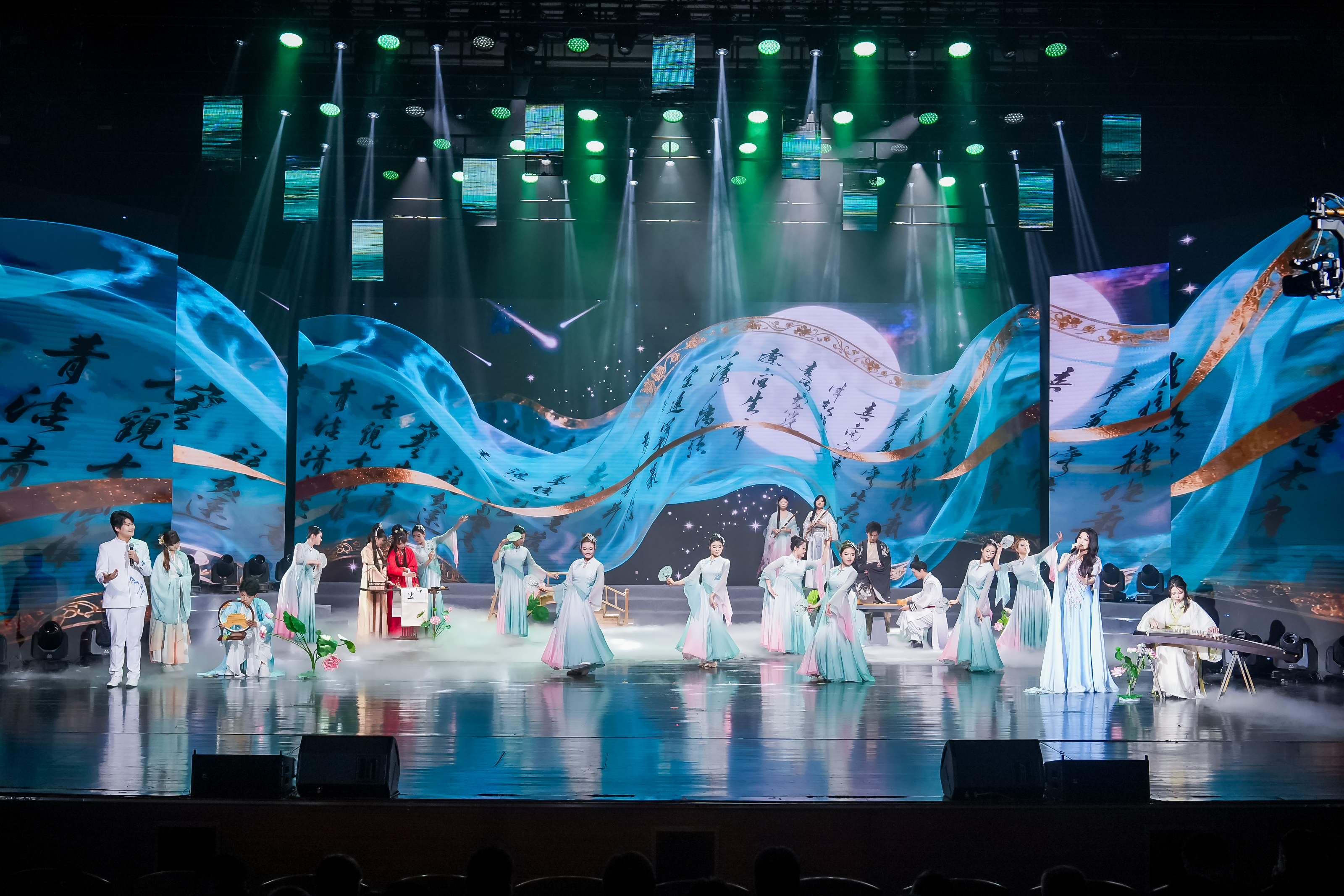 音舞诗画《诗画中国》深情演绎,笔墨丹青的诗意、琴棋书画的雅致、精雕细琢的匠心,在歌声与舞影中徐徐展开,生动诠释了文化自信的深厚底气——一个懂得欣赏美、创造美的民族,才有力量守护自己的家园。